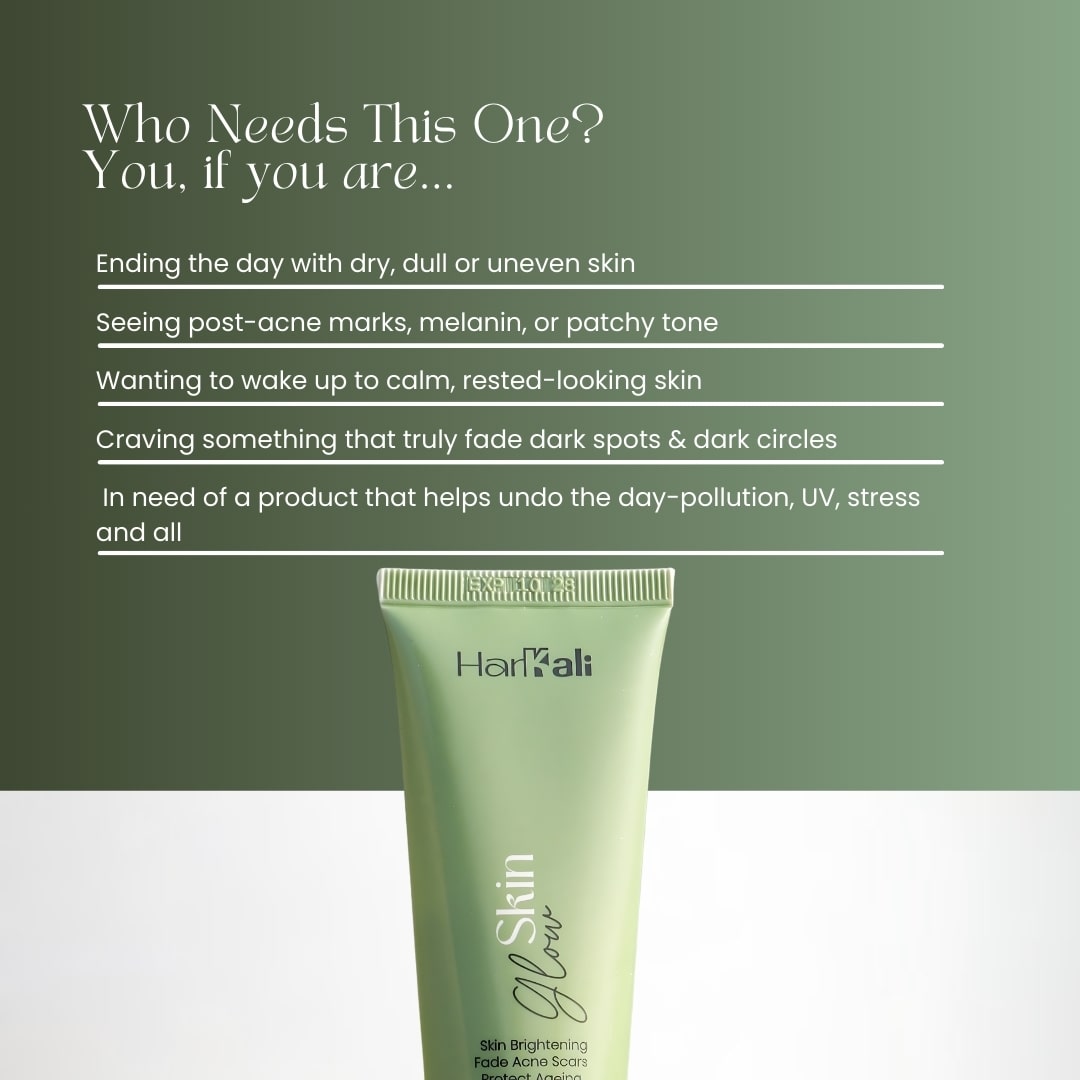 Harkali Skin Glow understands your skin’s struggles and works with it while you sleep. Our night-focused formula nourishes, brightens, and revitalizes stressed skin so you wake up looking refreshed and radiant.
